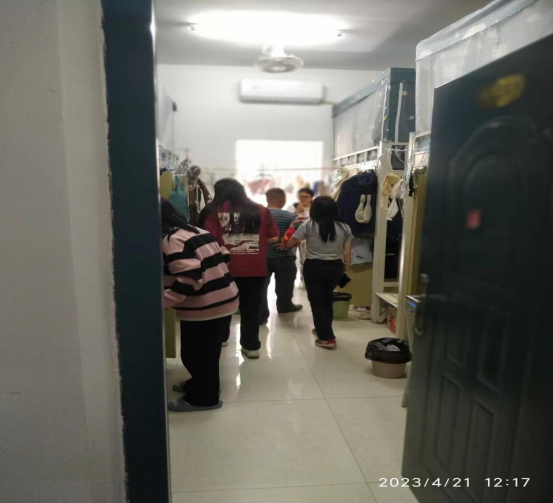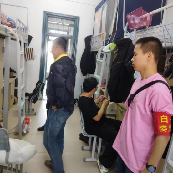 4月10、11日,学院展开自查自纠。班主任、辅导员分批逐楼、逐层、逐间,深入寝室就私接电线、使用大功率电器、兜售商品、留宿校外人员及卫生脏乱差等现象进行细致全面的检查,力争不留死角,不留盲区,收缴违规违章物品,纠正学生不文明、不规范的住宿行为,对少数安全防范意识淡薄的学生现场批评教育,登记、汇总安全隐患排查月报表,及时上报整改,消除寝室安全隐患