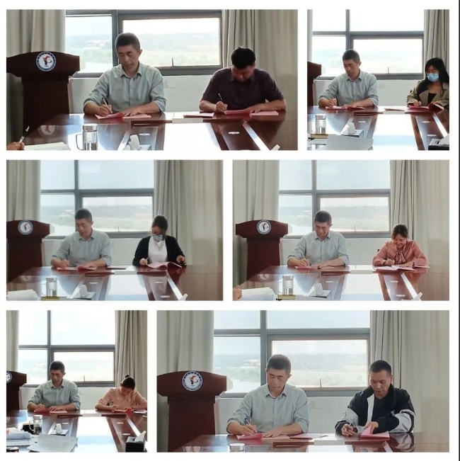 党委书记曾传鸿与各党支部书记分别签订学校《2023年意识形态工作责任书》。