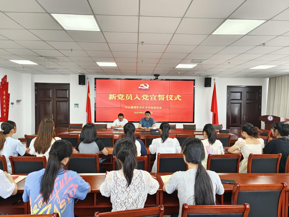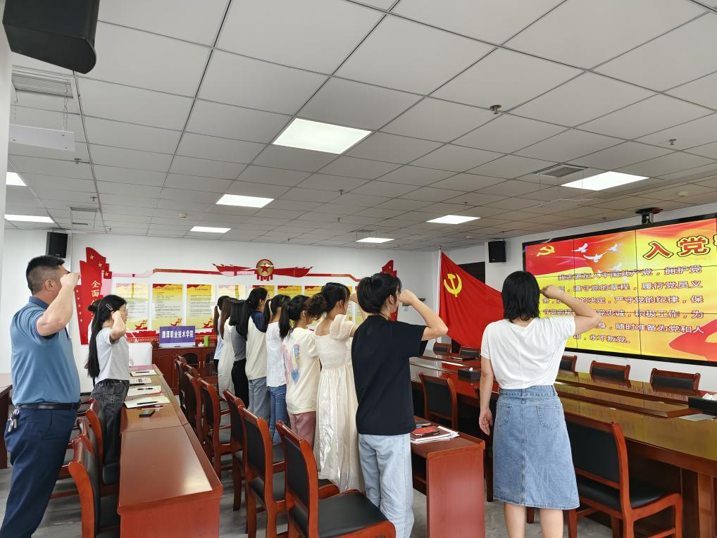 6月13日,2026世界杯官网党委举行新党员入党宣誓仪式暨新党员集体谈话活动。学院党委书记曾传鸿,分管领导俞万华,教育系党支部书记秦小艳,管理系党支部副书记夏玉明,信息工程系党支部负责人李建辉及12名新入党同志参加活动。