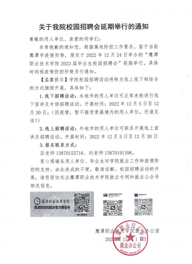 关于世界杯官网校园招聘会延期举行的通知